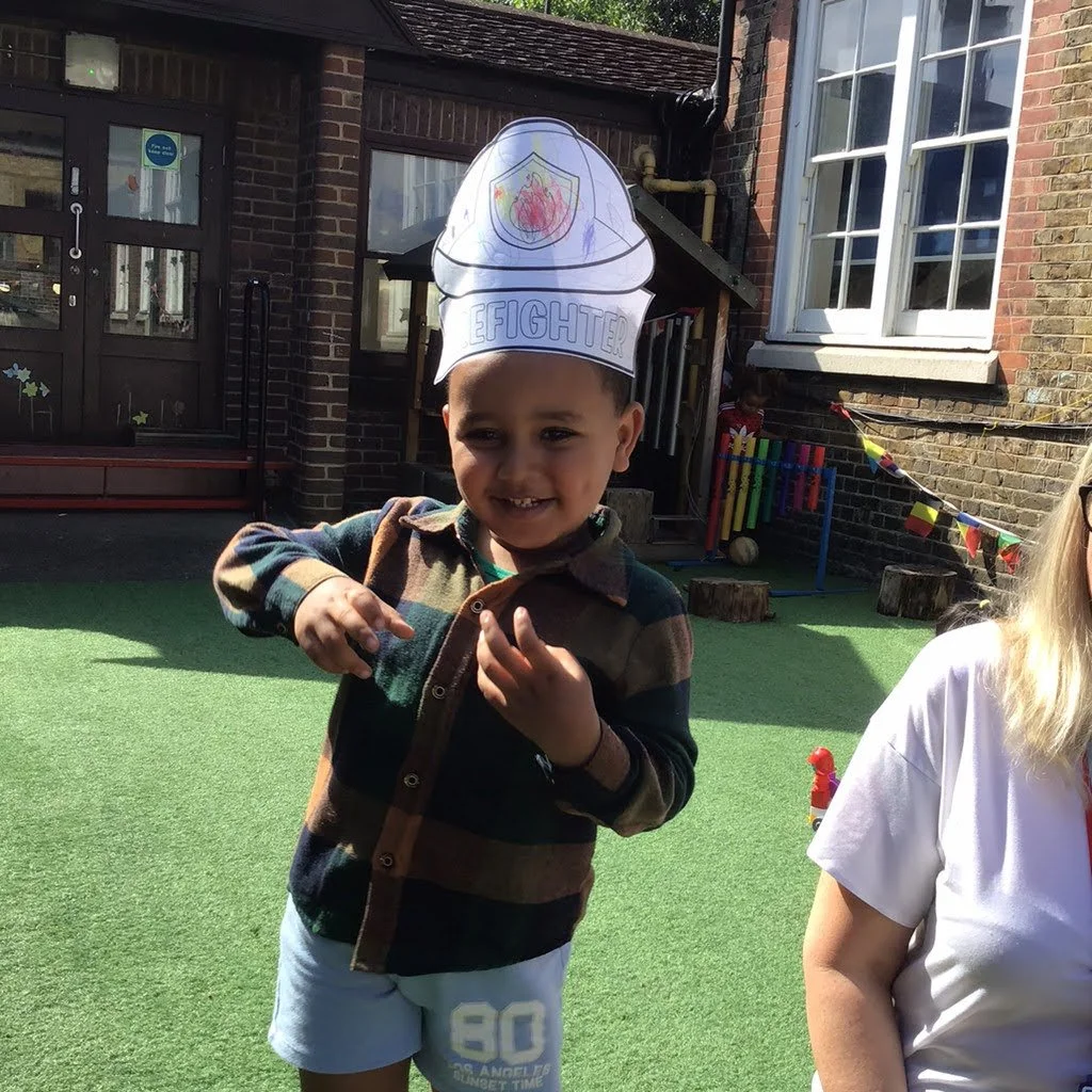 Nursery Centre children are fully integrated into mainstream and join in all the nursery activities. This year, they have made great progress on their signing skills, learning new vocabulary linked to their classroom topics. Role play is a great way to develop language, using signs like ‘fireman’ to act out being a fireman.