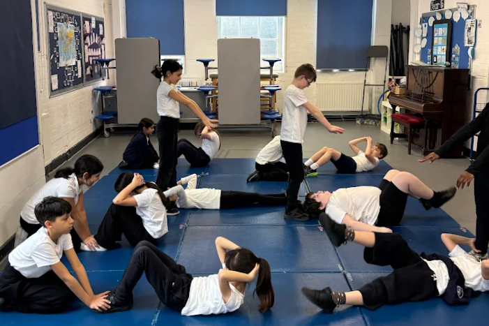 Lower KS2 students have been working on building muscle and general fitness. Completing HIIT style circuit training to continue to work hard even when tired. Multiple students working in a space has helped them to be aware of their body and others around them when in a confined or restricted space.