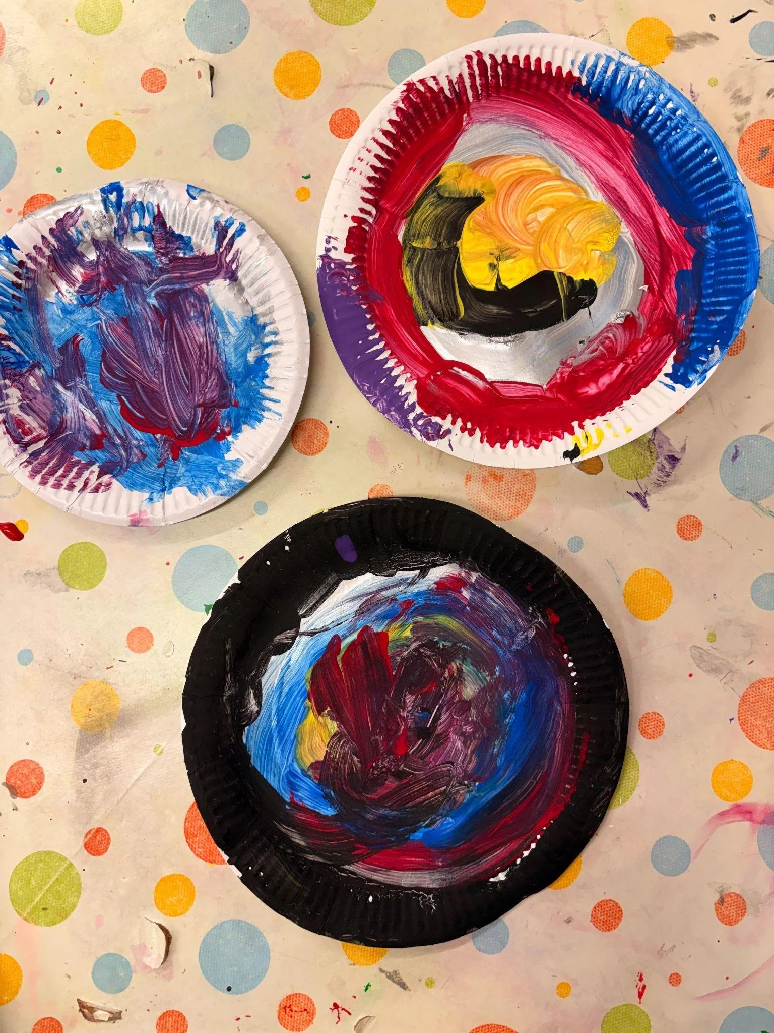 Nursery has been exploring the theme of the sky and space. As part of this learning, the children created their own paper plate planets, selecting a range of colours to make them unique. Some children enjoyed using their fingers to paint, while others chose to use paintbrushes to carefully apply their designs.