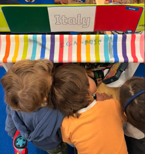 The children in Nursery have been learning about different countries around the world. When learning about Italy, the children listened to stories, learnt words in Italian, cooked pasta, played in §a pizza shop and made salt dough pizza. They showed great curiosity and loved making connections between where children in the class are from and what country was been learnt about.