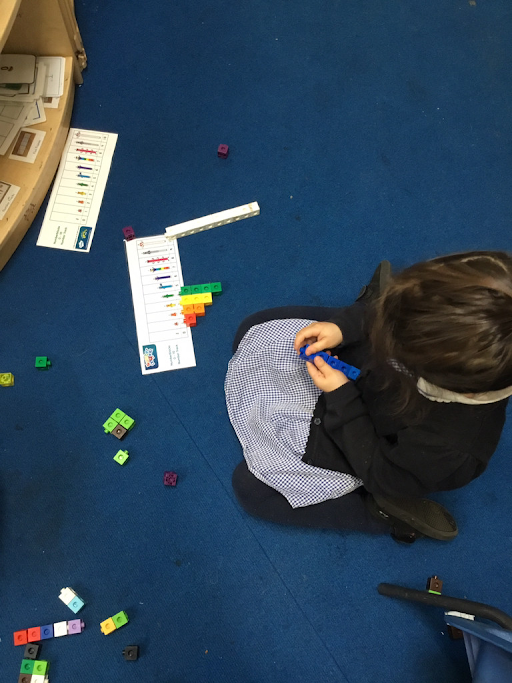 In Reception, children are developing their number sense by exploring the composition and sequencing of numbers to five. Using cubes as manipulatives and a number line as a scaffold, they developed a deep and flexible understanding of numbers 1–5 and their relationships. This concrete, hands-on learning provides a solid foundation for confident counting and is essential for future formal calculations.