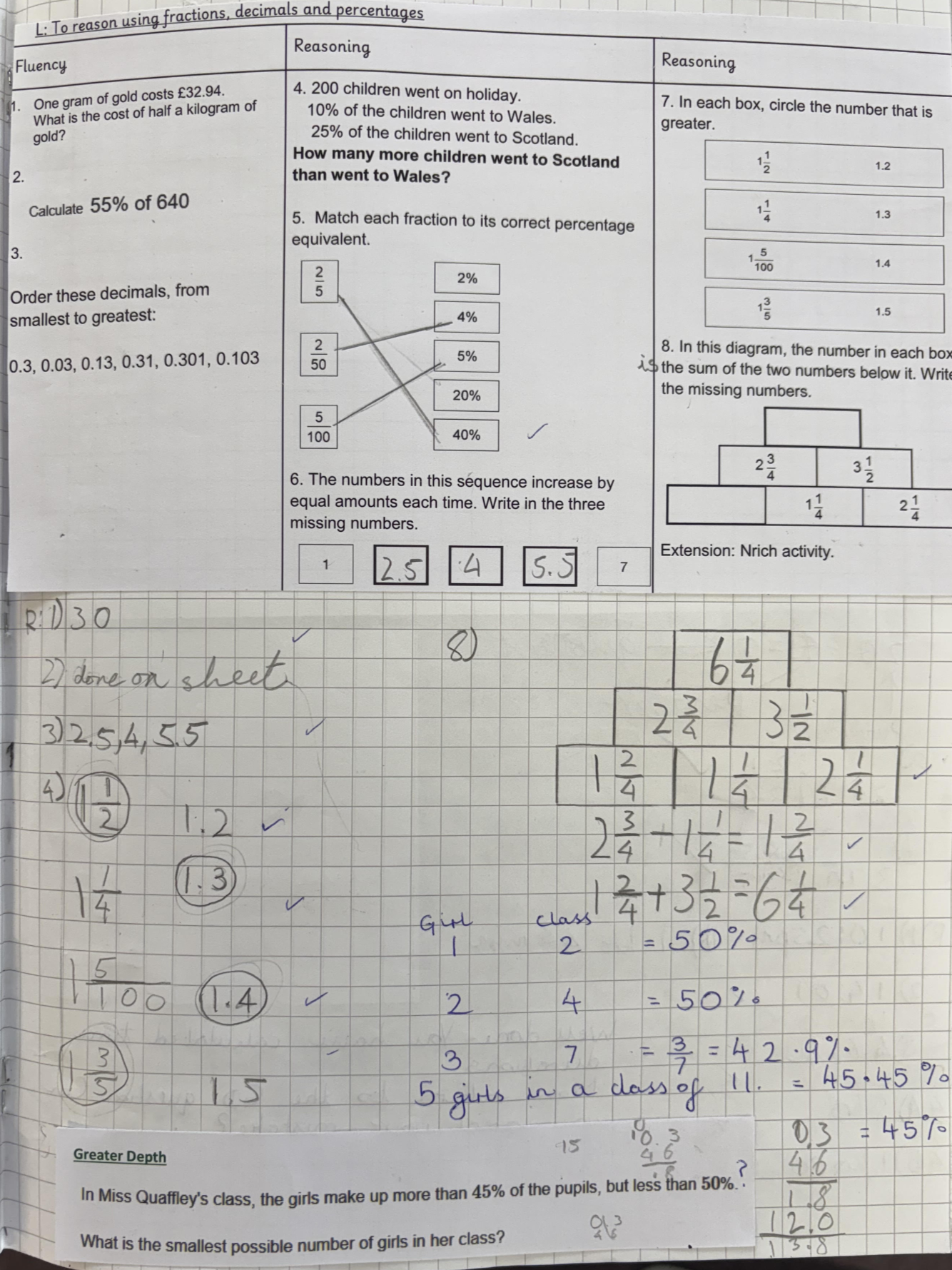 Year 6 pupils have shown strong progress in recognising, comparing, and writing fractions up to hundredths, including equivalent fractions. They can confidently represent fractions in different forms and make clear connections between fractions, decimals, and percentages. Pupils apply their understanding to more complex problems and use precise mathematical language to explain their reasoning.